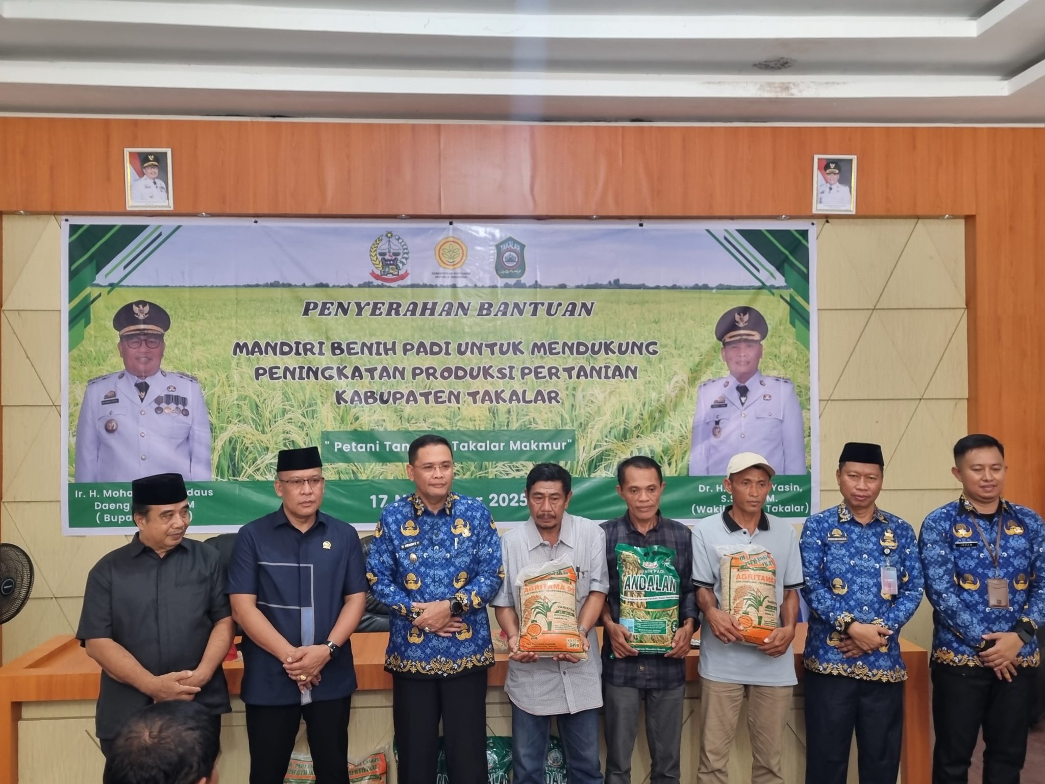 Upaya Pemerintah Kabupaten Takalar dalam mendorong kesejahteraan petani kembali dibuktikan. Senin (17/11/2025), Bupati Takalar Ir. H. Mohammad Firdaus Daeng Manye melalui  Wakil Bupati Dr. H. Hengky Yasin, S.Sos., MM menyerahkan bantuan 163 ton benih padi kepada ratusan kelompok tani di Takalar.